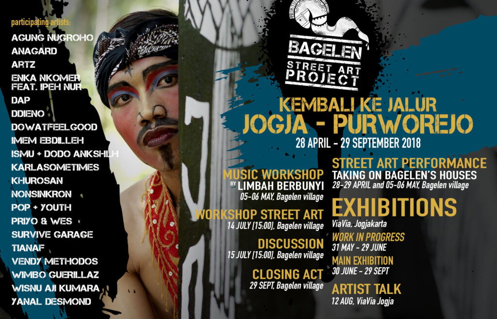 Seni yang bekerja dengan kerangka proyek yaitu praktik seni yang dibuat dengan tujuan tertentu dan dirancang untuk berjalan dalam kurun waktu tertentu bukanlah hal yang baru. S. Sudjojono dan Afandi bersama Seniman Indonesia Muda (SIM) melakukan kolaborasi dengan penulis seperti Chairil Anwar dengan tujuan menjadikan seni sebagai alat perjuangan[i]. Mahasiswa Indonesia (termasuk mahasiswa pergurunan tinggi seni) mengenal kuliah kerja nyata, sebuah praktik intrakurikuler perkuliahan yang mengharuskan mahasiswa bekerja secara interaktif dan sinergis bersama masyarakat dengan tujuan menumbuhkan learning community dan learning society melalui pembelajaran bersama[ii]. ViaVia melakukan proyek seni ini juga mempunyai tujuan yang serupa, yakni melakukan praktik seni yang dapat berguna untuk masyarakat, yang kemudian mengerucut pada pilihan seni jalanan sebagai artikulasi dari praktik seni untuk masyarakat ini.
